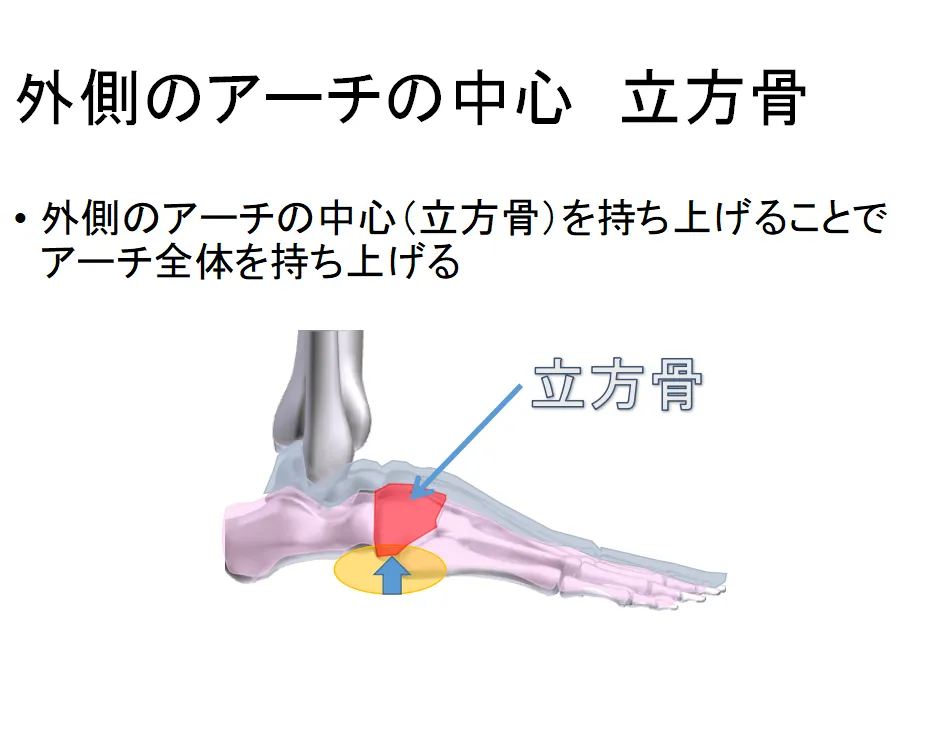 こうして生まれた立方骨サポートは、 足の自由度を保ちながら外側アーチを安定させ、 深い内傾角を取るための足首の初動を妨げないという特徴を持っています。